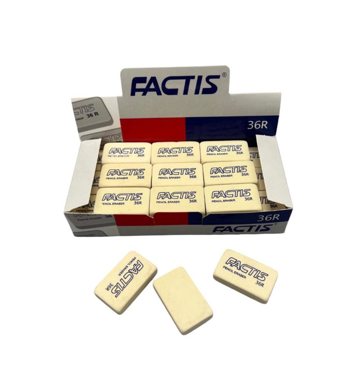 با یک پاکن نرم اشتباهات هم دوست داشتنی می شوند.پاکن 36R فکتیس، نوشت افزاری است با کربرد آسان که به راحتی درجامدادی شما قرار می گیرد. این پاکن بدون اینکه اثری از اشتباه شما به جا بگذارد، می تواند آن را پاک کند. با این محصول میز تحریر یا سطح اطراف دفترتان کثیف نخواهد شد. این پاکن حس نوستالوژی و خوبی به شما میدهد. سطح نرم پاکن دست شما را آزرده نخواهد کرد. این پاکن به دلیل ابعاد کوچک خودبه راحتی و بدون اشغال فضای زیاددر جامدادی شما جا میشود. قدرت پاک کنندگی بالای آن هیچ اثری از اشتباه نوشتاری شما به جای نخواهد گذاشت. ضمن آنکه در فرآیند پاک کردنبا این پاکن براده ی زیادی برجا نمی ماند. نوشتن با مداد یا مداد نوکی زمانی لذت بخش است که یک پاکن خوب هم برای پاک کردن اشتباهات وجود داشته باشد. پاکن 36R به دلیل حرکت نرم، قدرت پاک کنندگی بالاو عدم ایجادبراده ی زیاد یکی از اعضای دائم جامدادی کیفی یا رومیزی شما خواهد شد.