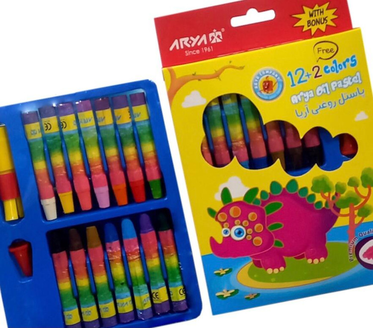 پاستل 2+12 رنگ روغنی آریا(پک 12 بسته ای)